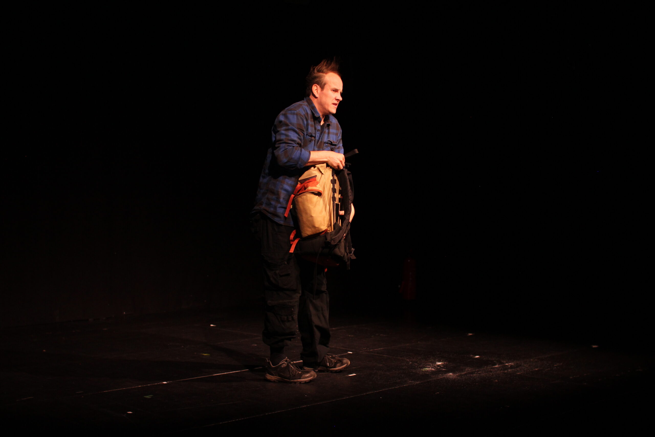 Das Saallicht erlischt – Ein wunderlicher Reisender betritt den Raum, ausgestattet mit Rucksack und einer kleinen Kerze. Auf der Suche nach einem geheimen Goldschatz erzählt er von seiner gefährlichsten Reise: Über hohe Gipfel, durch die tobende See bis zu einer verlassenen Insel. Er begegnet nicht nur schleimigen Schlangen, sprechenden Paradiesvögeln und leuchtenden Fabelwesen – Auf dieser einsamen Insel verstecken sich doch einige grimmige Piraten, die den Goldschatz verteidigen ..